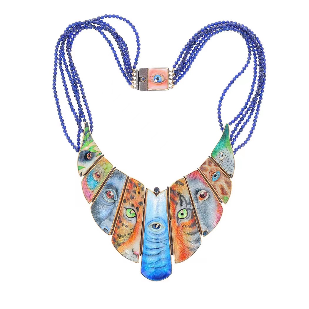 Another eye-catching shortlisted work is the Celestial Symphonies Opal necklace submitted by American designer Marianne Hunter. The name of the work is translated as “Symphony of Heaven”, inlaid with white Opal from Australia, Ethiopia and Peru. With transparent Opal, decorated with Paraiba tourmaline, diamonds and pearls, the natural colorful change of gemstones is cleverly integrated with colored enamel and gold foil to create a dreamlike visual light and shadow.