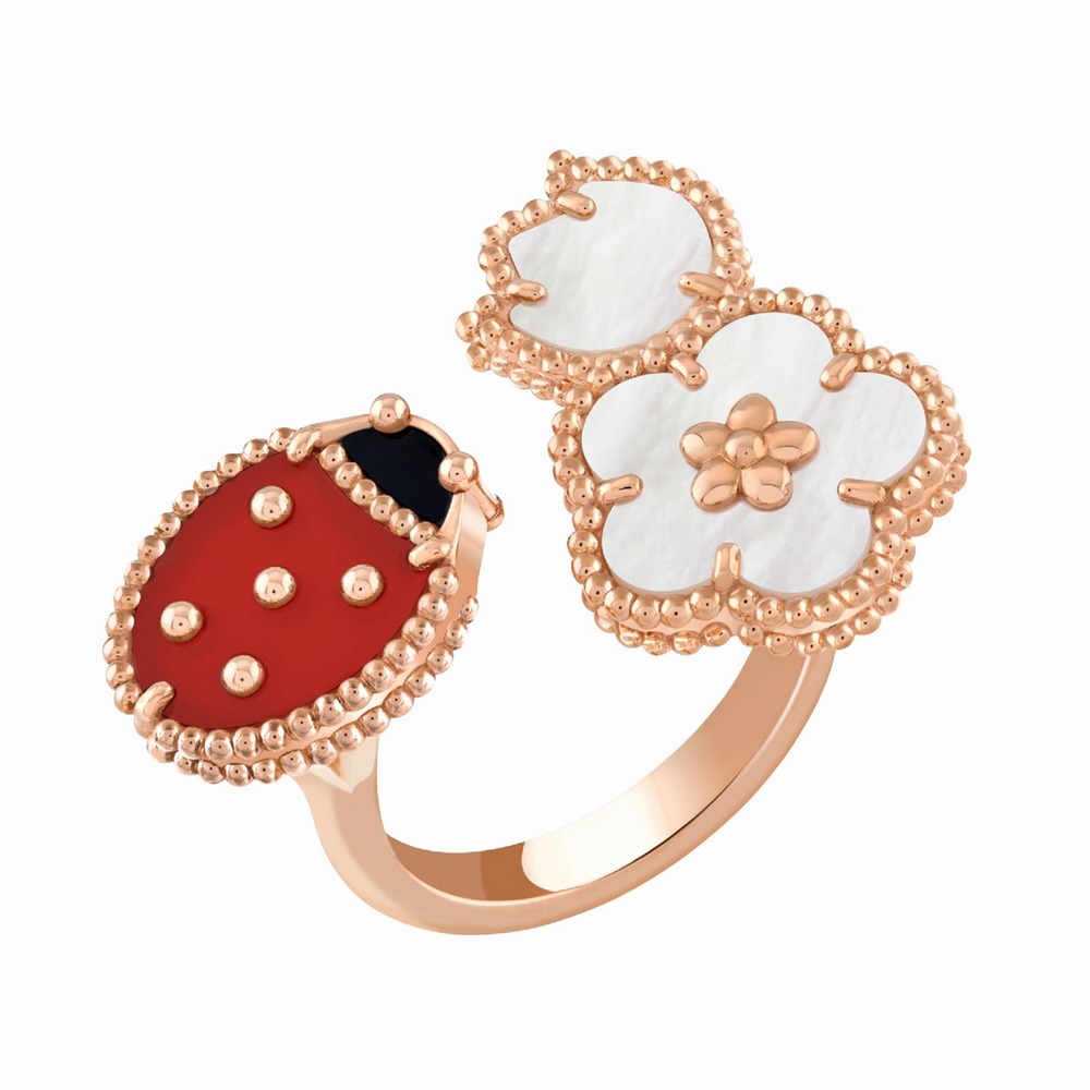 Van Cleef & Arpels has just released a new season of Lucky Spring, again inspired by the family’s naturalistic jewelry collection from the 1920s, which uses gem slices and the “gold beading technique” to create vivid patterns of ladybugs, plum blossoms and lilies of the valley to celebrate the spring garden.